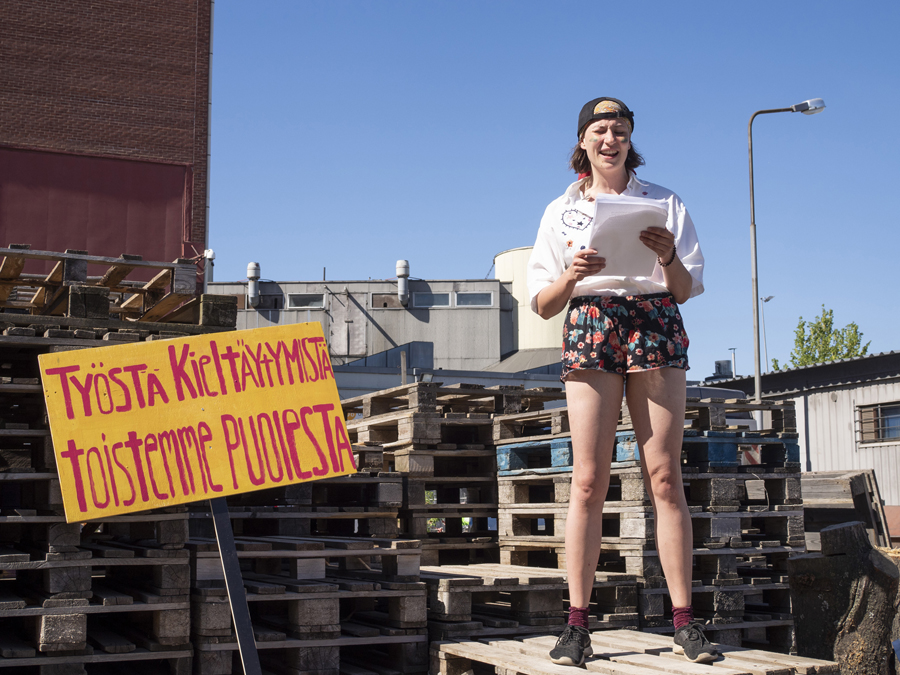 Artists: Aino Lintunen, Ali Akbar Mehta, Alina Autio, Alina Belishkina, Andrea Coyotzi Borja, Bassam El Baroni, Erno-Erik Raitanen, Liina Kuittinen, Lotta Esko, Maria Mastola, Mira Simon, Nelli Ruotsalainen, nynnyt, Parsa Kamehkhosh, Silja Eriksson, to kosie, Työstäkieltäytyjäliitto, Valeria Nekhaeva, Vappu Jalonen